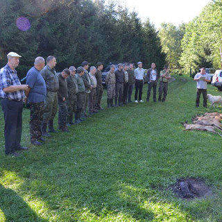 29. lipca spotkaliśmy się po raz drugi już w tym roku w celu poszukiwania Złotego Rogacza, który podobno ciągle ukrywa się w naszej Kniei. Uroczyste polowanie rozpoczęto zbiórką o godzinie 16 30. Korzystając z obecności 22 Kolegów, na początku wręczono zaległe medale za pozyskane trofea. Wręczenia medali dokonali: Członek Okręgowej Komisji Oceny i Wyceny Trofeów Kol. Karol Skrzetuski oraz Członek Okręgowej Rady Łowieckiej, Prezes naszego Koła- Kol. Maciej Jaśkowski. Okazało się , że nazbierało się tego całkiem sporo, co może świadczyć o prawidłowo prowadzonej hodowli w naszym rejonie. Zanim jednak medale zawisną w domu na honorowym miejscu, trzeba je powiesić na szyi. Dzisiaj największe ciężary dzielnie dźwigał Prezes. Kolejny miły akcent to wręczenie odznaczenia " Zasłużony dla łowiectwa zielonogórskiego" , które Członek ORŁ, Kol. Maciej Jaśkowski wręczył Koledze Raphaelowi Radzickiemu. Po milszych chwilach przyszedł czas na formalności. Łowczy Koła, Kol. Rafał Ślozowski sprawnie omówił zasady polowania, a myśliwi rozlosowali rejony polowań. Tyle na dzisiaj- każdy oddalił się do swojego rejonu. Rano na pokocie znalazło się 5 rogaczy, 1 dzik oraz 2 lisy. Rogacze pozyskali Koledzy : Michał Jaśkowski, Maciej Jaśkowski, Mateusz Czepiżak, Wojciech Wittke oraz Raphael Radzicki. Dzika w kniei spotkał Kol. Dawid Radzicki. Lisa na pokot położył Kol. Darek Łuka, a obok swojego rogacza lisa położył też Kol. Wojciech Wittke. Komisja jednogłośnie wskazała na Kolegę, który pozyskał Złotego rogacza- szczęśliwcem okazał się Kolega Michał Jaśkowski- Gratulacje ! Trochę mniej złoty okazał się rogacz Kolegi Mateusza Czepiżaka, a jeszcze mniej ( a może to już srebrny ? ) rogacz pozyskany przez Kolegę Wojciecha Wittke. Tak oto skończyła się część oficjalna, dalej tak jak zwykle, wszyscy zasiedli do stołu i spędzali mile niedzielne przedpołudnie kosztując różnych specjałów- w tym również napitków.